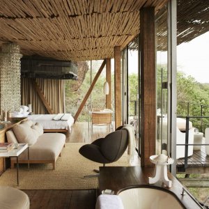 Lebombo accommodates 30 guests in 15 suites & Sweni accommodates 12 guests in six suites.The luxury air-conditioned suites have floor-to-ceiling glass walls, luxurious bathrooms, indoor and outdoor showers, an expansive living area, mini bar and fridge, room safe and private wooden leisure decks with a day bed. All the suites have direct dial telephones.