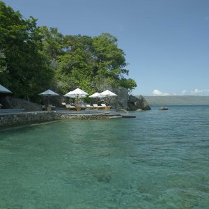 Amanwana (peaceful forest) is a wilderness hideaway and eco-initiative on the nature reserve of Moyo Island. Lodging is in luxury tents, with wall dives directly offshore, jungle treks to waterfalls and limestone pools.