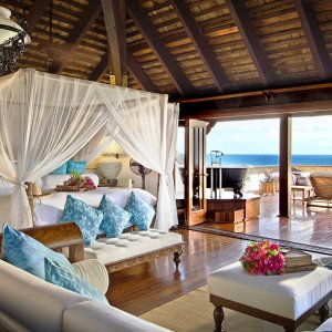Accommodation on Necker Island includes nine bedrooms in the Great House and six individual Bali Houses dotted around the island. There is also a bunkroom in the Great House that sleeps up to six children. All rooms have private en-suite bathrooms.