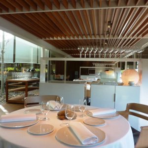 El Celler de Can Roca is a restaurant in Girona, Catalonia, Spain which was opened in 1986 by the Roca brothers, Joan, Josep and Jordi, and holds three Michelin stars. The layout features wooden floors, with simply dressed tables. On each table sits three stones to signify the three Roca brothers, while the tableware is Rosenthal china.