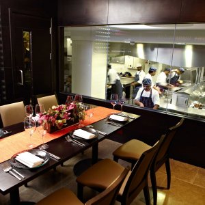 Cesar Ramirez, who is originally from Mexico is largely self taught and previously worked at Danube and Bouley in New York, but it is his visits to France and particularly Japan that have most influenced his cooking. What Mr. Ramirez is doing at the Chef’s Table is entirely his own production, a kind of sui generis exercise in personal expression. He and his staff draw no attention to themselves save for when Mr. Ramirez introduces each dish. Then there is silence as forks go to the food, and food goes into mouths and suddenly everyone starts nodding and chirping and staring at cooks who suddenly might as well be magicians.