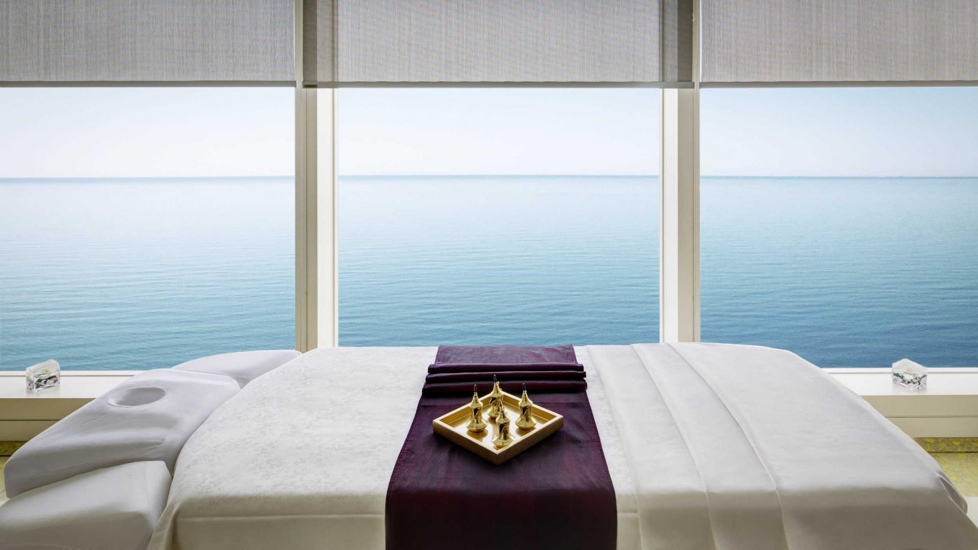 Each air-conditioned Royal Cabana comes with its own dedicated butler, mini bar, spa menu, 55-inch Bang & Olufsen TV, amenities replenished throughout the day and glass balconies that peer back over the water to Jumeirah Beach Hotel. The 10,000-sqm platform stretches 100 metres into the Arabian Gulf and reflects the shape of Burj Al Arab, linked to the hotel by a central walkway, flanked on either side by beaches and private cabanas.