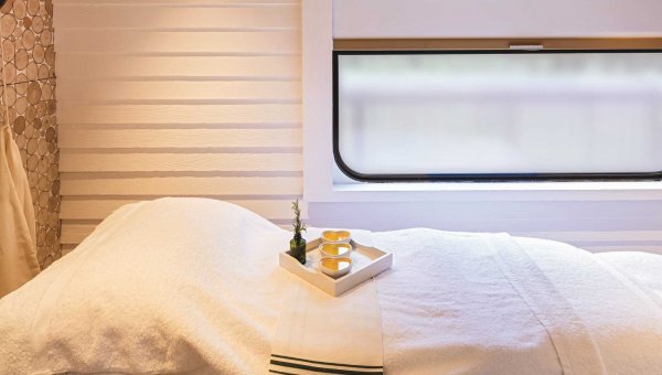The exclusive train ride just became even more fascinating with the addition of a special spa carriage. The Bamford Haybarn Spa features bespoke Bamford treatments for passengers travelling on overnight rail journeys. Enhance your relaxation travel experience by trying the famous Bamford’s spa treatments inspired by nature. Individually crafted wellbeing treatments are devoted to connecting the mind, body and soul with the natural world. The Haybarn Spa has been designed using sustainable wood from Scotland and the Cotswolds and features two relaxing single treatment rooms with picture windows looking out onto the beautiful Scottish countryside.