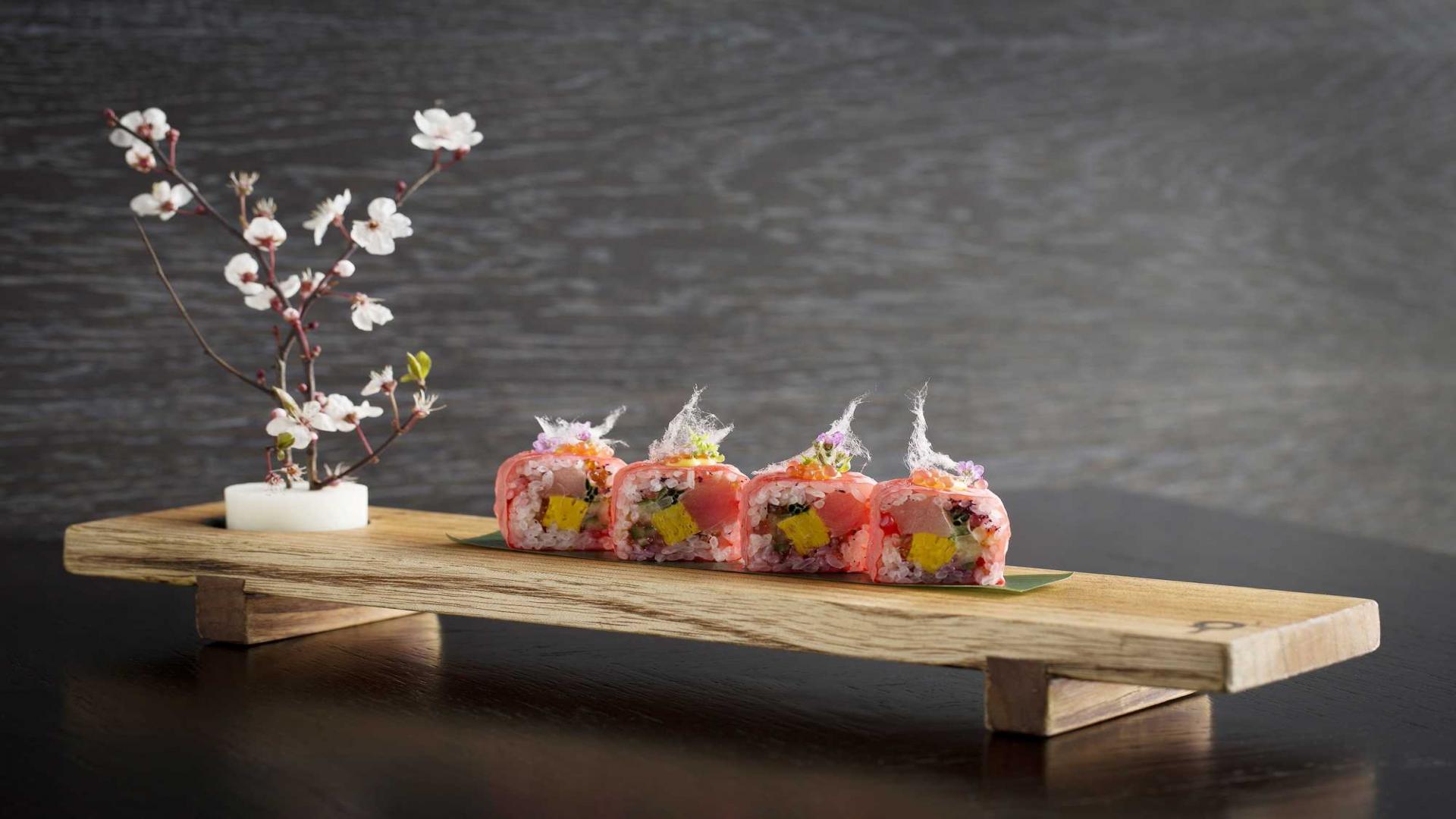 “Food as art” menu was inspired by three contemporary Japanese artists. In this famous menu, he references the signature polka dots of Yayoi Kusama, bold, colorful abstracts of Tsuruko Yamazaki and the floral motifs of Ryoko Aoki. This is more than just about the taste of food, this is about inspiration, looking on food as a symbol of culture. This is about getting to know Japan in the heart of London.