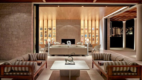 Inspired by the classic Greek architecture and combining contemporary amenities Villa 20 is an extraordinary example of luxury accommodation. Beautiful work of architect Ed Tuttle is made even better with large-scale sculptures and works of art by Greek and international artists. This palatial residence surrounded by olive groves serves as an art gallery designed solely to create for you an ambiance of antique luxury.