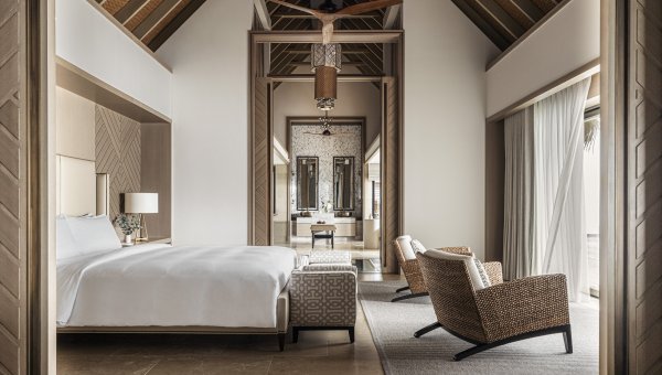 The sprawling estate accommodates 24 guests across two elegantly designed villas and one sweeping four-bedroom residence. A two-bedroom overwater villa promises a unique ocean experience with two spacious master bedrooms complete with double dressing rooms, indoor and outdoor rain showers, a shared living room, infinity pool and jacuzzi. A separate three-bedroom beach villa, set within lush gardens and coconut palm canopies, has its own beach access and two swimming pools. staying in the four-bedroom residence will enjoy two king bedrooms, two queen bedrooms, jacuzzies and an expansive common living area, all with direct access to the beach.
