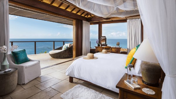 Most notably new to the island is the newly rebuilt Bali Hi complex with three individual suites, which, perched cliffside, have the luxury of overlooking the turquoise waters of both Turtle Beach and Flamingo Beach. All of the suites at the multi-level Balinese-inspired complex are individually designed, offering a unique sense of charm. While each comes with its own private deck area, two rooms are additionally fitted with their own outdoor plunge pools with soaring views. Communally, an expansive undercover terrace area brings the space together, used for dining and lounging by the infinity pool that overlooks the neighbouring islands.