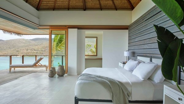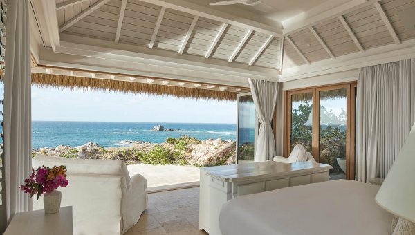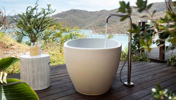 The crown jewel of the estate is the 812 sq. ft. master guestroom, featuring an open-plan bedroom and living area that seamlessly transitions onto an extensive 180-degree decking and entertaining area, offering some of the best views on the estate. Guests will wake up to sunrise views overlooking Sir Richard Branson’s iconic neighboring Necker Island, before later soaking up sweeping sunset views from the freestanding outdoor bathtub.