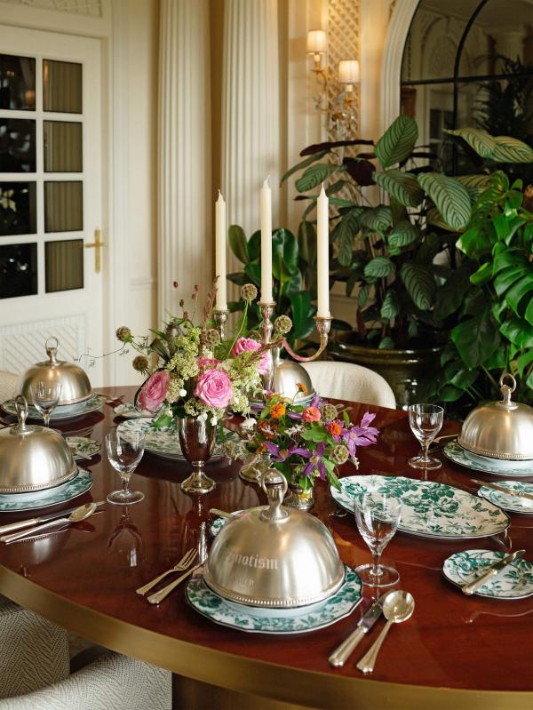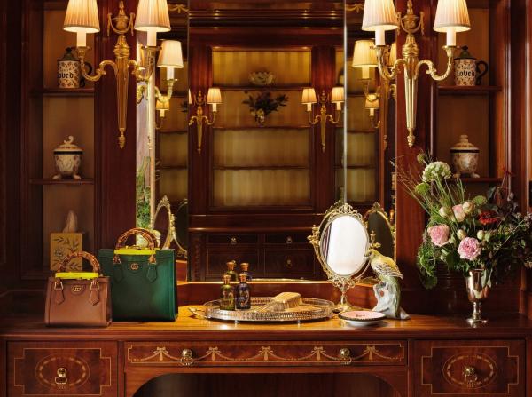The relationship between the two was first under the spotlight upon the reveal of Gucci’s Aria Collection in April 2021, privately screened locally at The Savoy. The Collection and its presentation included numerous nods to the hotel and its role in shaping Gucci’s mythology. Now, the partnership’s next iteration is the transformation of The Savoy’s Royal Suite into a reflection of the Gucci world, featuring furniture, furnishings and decorative items from the Gucci Décor collection. In addition, art and antiquities from auctioneers Christie’s have been carefully chosen to complement the aesthetic, which has been conceived to harmonise with the design and heritage of The Savoy.