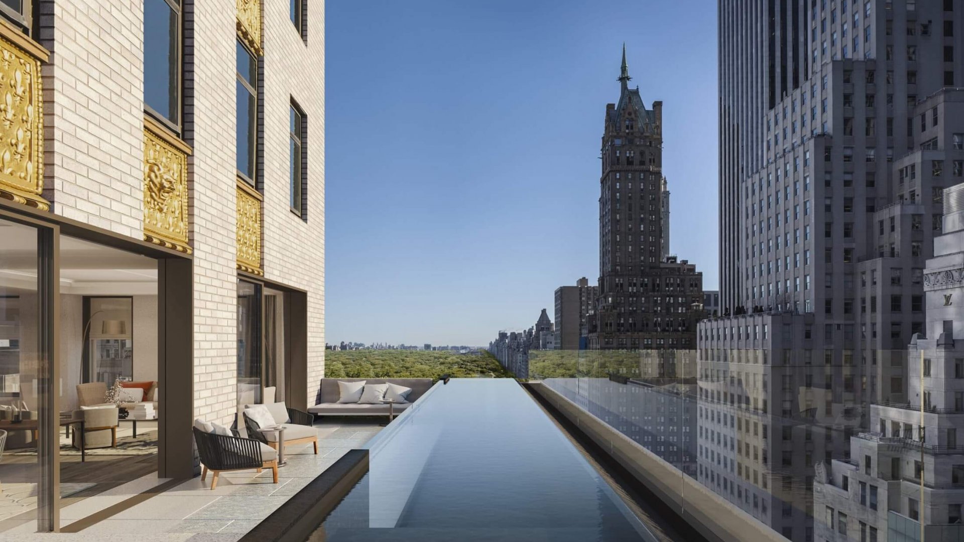 Featuring reflective pools and dramatic firepits, the 650-square-meter outdoor space benefits from a retracting glass roof allowing year-round access. Meanwhile, the exclusive Jazz Club offers world-class live performances, reinventing a classic New York experience and serving as a nightly gathering place.