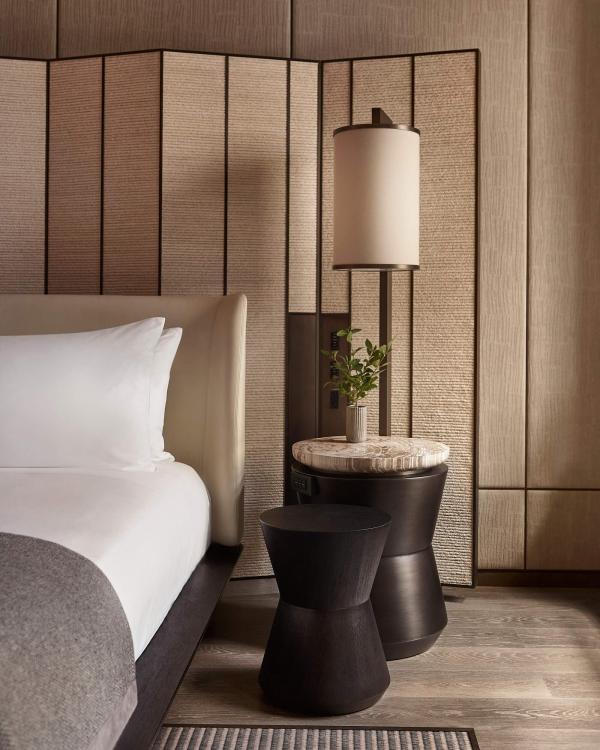 On the building’s 11th and 12th floors, 11 Grand Suites can be configured with additional bedrooms to create family-sized spaces. In a further nod to the brand’s roots, each suite also features a large-scale mural by contemporary Japanese artist Ryoko Adachi and inspired by the 15th-century masterpiece Pine Trees (Shōrin-zu byōbu) by Hasegawa Tōhaku. One of Japan’s most celebrated works, Pine Trees, owned by the Tokyo National Museum, was designated as a National Treasure in 1952 and is internationally acclaimed. Adachi’s recreation of the piece perfectly captures its eminent pre-Edo influence and is a homage to Tōhaku, printed on delicate rice paper and spanning the walls as a captivating focal point.