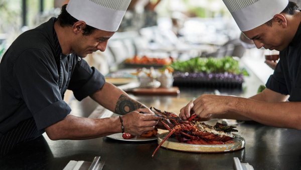 After this adventure, Chef Heberto Mejía is ready to showcase his wood-fired specialties at Bahia, home of the traditional flavors and enchantment of Latin American cuisine. Chef Heberto connects you to Costa Rica through fresh and locally sourced ingredients such as vegetables from the Cartago region or fresh seafood from the Puntarenas province. His inspiration leads to the rich cultural storytelling behind each dish. Unwind over a relaxing al-fresco dinner in the dimly lit ambiance of Bahia, featuring hanging lanterns and trees adorned with twinkling lights. Dinner is served on beautiful handmade plates from local Chorotega tribe artisans, further connecting cuisine and culture.