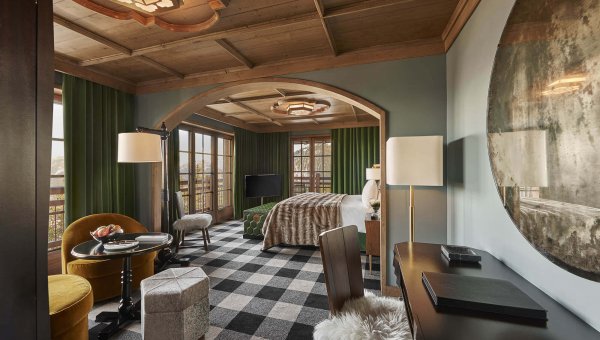 Distinguished interior architects Joseph Dirand and India Mahdavi collaborated on the hotel's contemporary décor, aiming to bring "urban refinement to the mountains." The design seamlessly combines Dirand’s plush minimalism in common areas with Mahdavi’s warm colors and textures in guest rooms, suites, and chalets, creating distinct ambiences that balance warmth and elegant restraint.