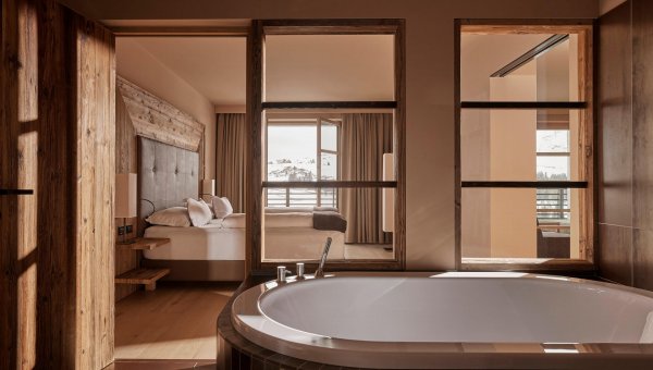 Your journey begins in one of the 60 meticulously designed rooms, each a sanctuary offering uninterrupted views of the iconic Dolomite peaks. The interiors reflect a harmonious fusion of comfort and sophistication, promising a haven that transcends the ordinary.
