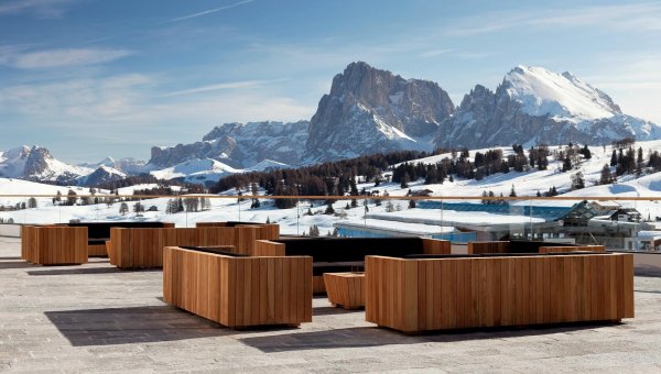 Step into a world where the hotel seamlessly blends with the surrounding landscape. The original quartzite natural stone facade and the wooden roof structure mimic the natural contours of the Dolomite terrain, ensuring that every inch of the COMO Alpina Hotel resonates with the essence of its extraordinary setting.