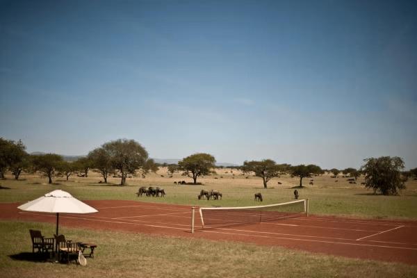 For a truly unique tennis experience, Singita Sabora Tented Camp offers a court set amidst the vast plains of the Serengeti. Playing tennis here means sharing the court with the sights and sounds of African wildlife, creating an unforgettable backdrop for your game. The camp combines luxurious accommodations with the thrill of a safari adventure, ensuring that your stay is both exciting and comfortable. After a match, embark on a game drive or relax in the camp’s elegant surroundings.