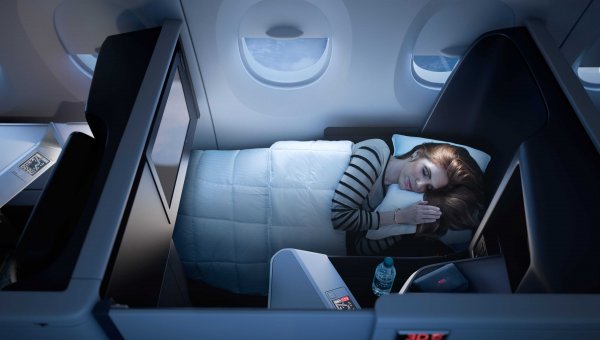 A total of 32 Delta One suites will debut on the airline’s first Airbus A350, which is due to begin service late next year. In addition to fully lie-flat seats with direct aisle access each suite will offer a full height door, ambient lighting, stowage, memory foam cushions, 18-inch monitors and universal power outlets.